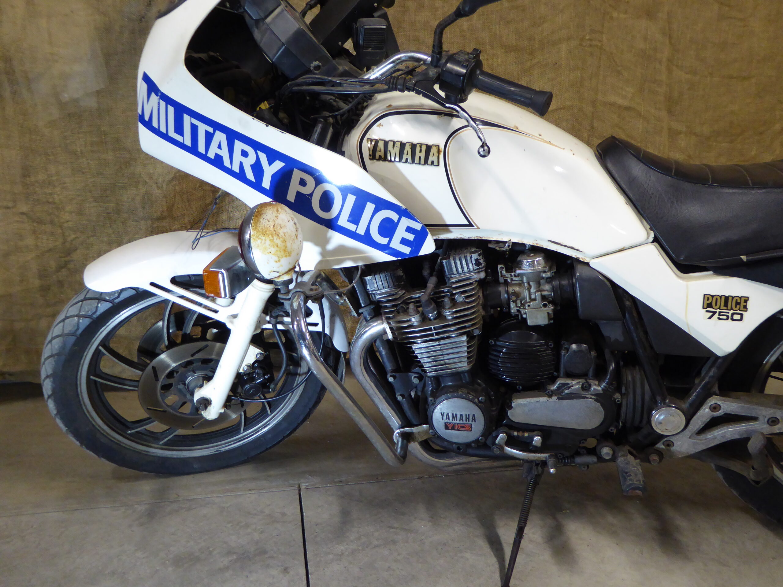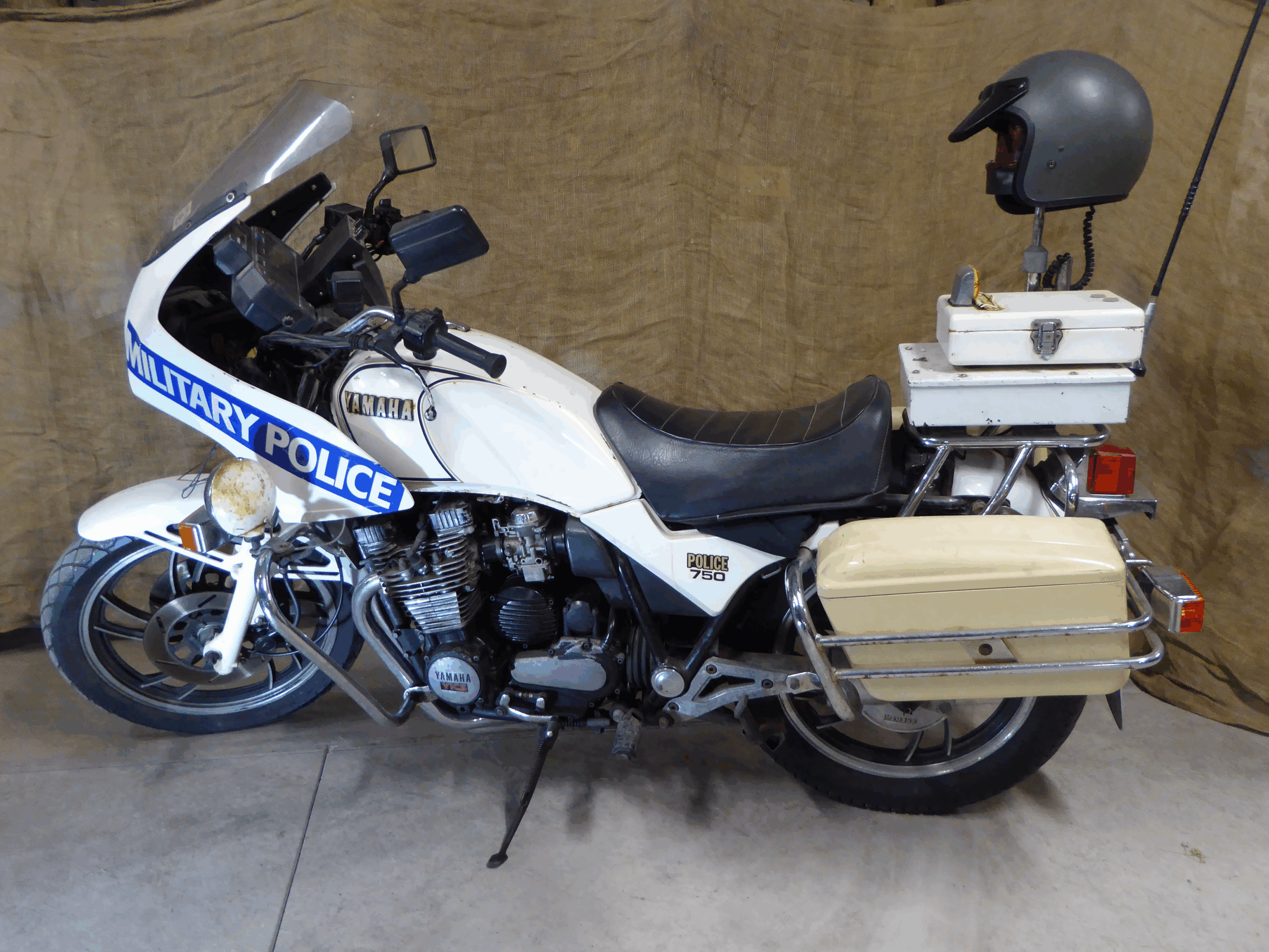 The XJ750 was a 750cc road bike built by the Japanese manufacturer Yamaha between 1982 and 1985. While being essentially the same as the standard civilian bike, the -P (Police Special) model did have a number of unique features, including the hard bags on either side of the rear wheel, the front fairing, a special Police digital speedometer (advanced technology for the day!), and the single rider seat.